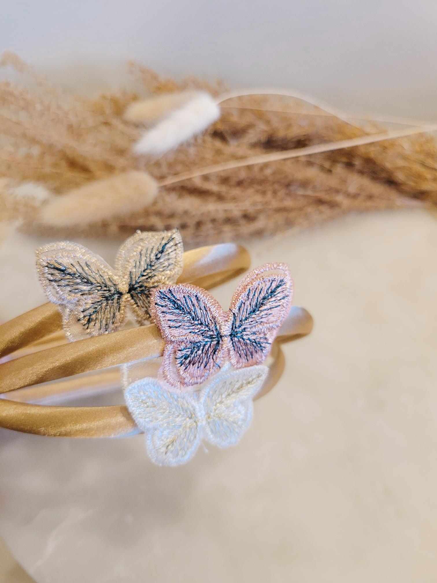 The Butterfly Tiara features a charming butterfly detail on a universal size headband, suitable for both babies and girls. Available in white, pink, and cream, this tiara adds a delicate touch to any outfit. Perfect for special occasions or everyday wear.