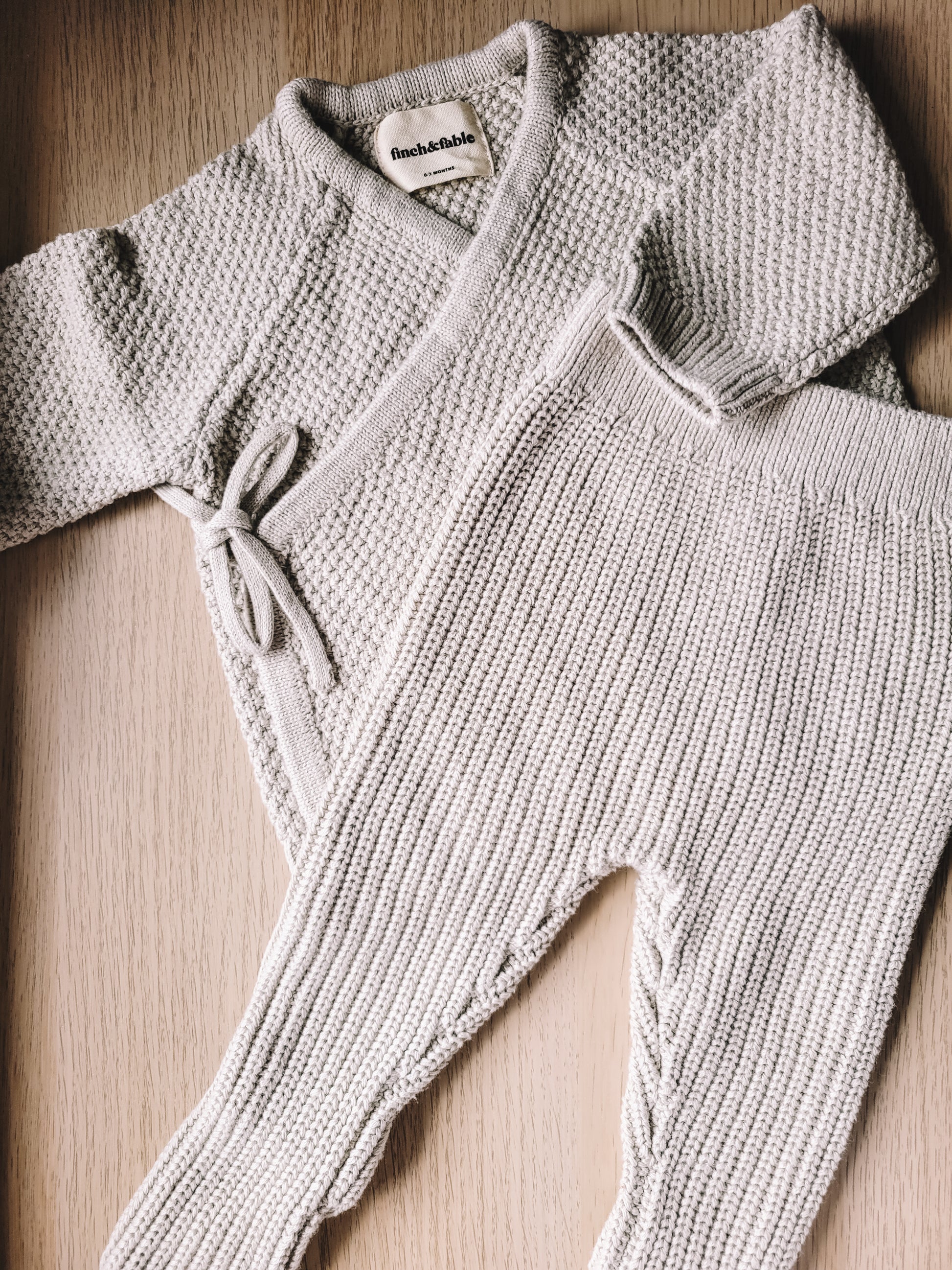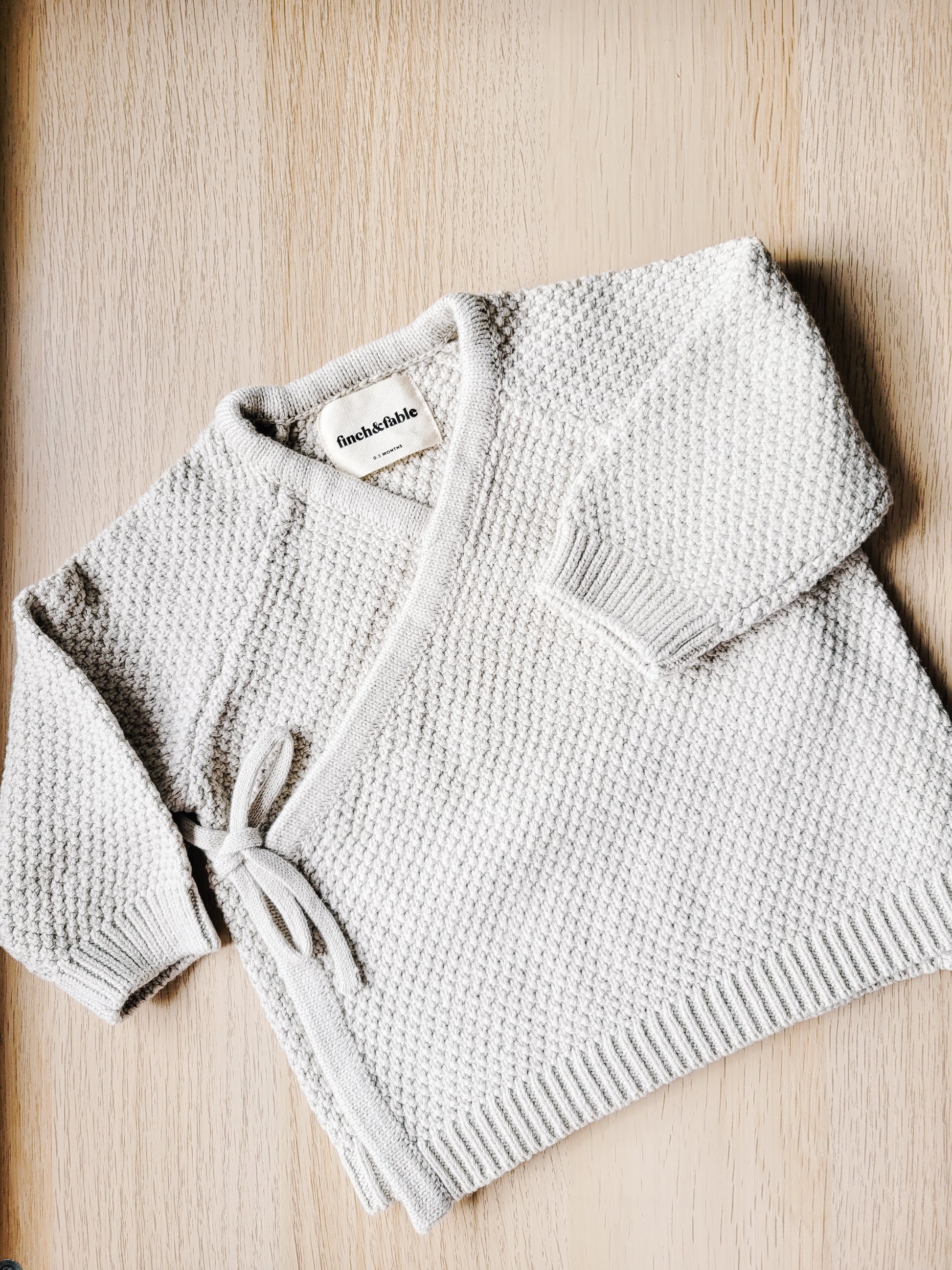 Our Kimono Knitted Top is crafted from soft organic cotton knit, designed to wrap your baby in warmth without bulk. The side-tie kimono closure makes dressing easy and fuss-free — no need to pull anything over delicate heads. A beautifully minimal piece that’s gentle on skin and easy to layer, perfect for newborns and growing explorers alike.